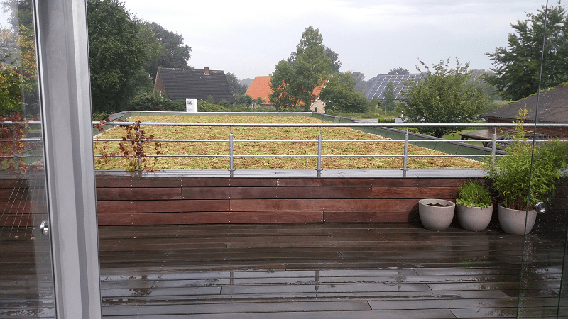Deze voordelen gelden overigens niet alleen voor intensieve groendaken, maar ook voor extensieve en semi-intensieve groendaken. Een semi-intensief groendak heeft een wat dikkere substraatlaag dan een extensief groendak, zodat er meer beplantingsmogelijkheden zijn dan bij een extensief groendak. Hierdoor krijgt u meer een ‘tuingevoel’ dan bij een extensief groendak, terwijl het onderhoud van zo’n semi-intensief groendak een stuk beperkter is dan bij een intensief groendak.